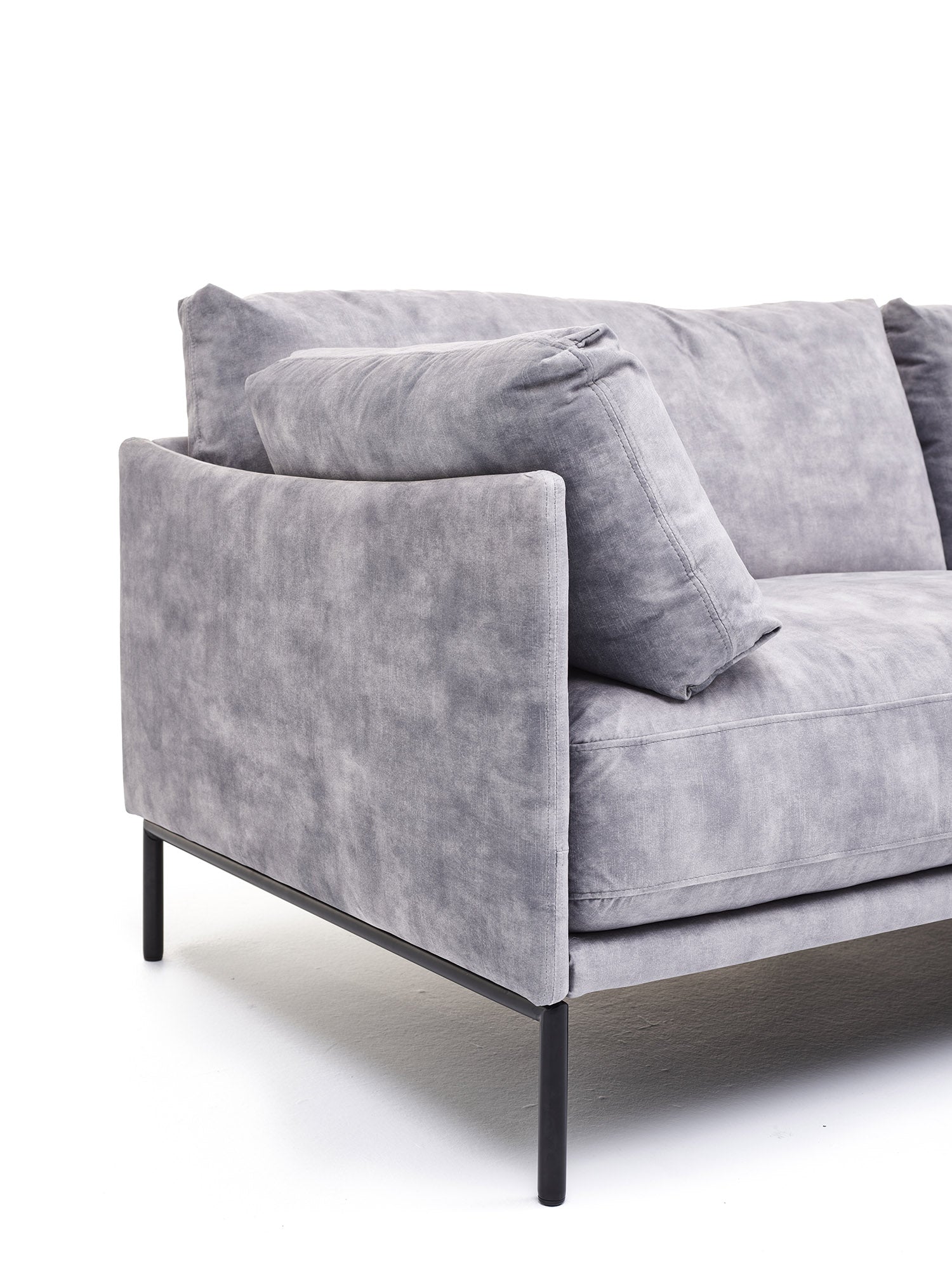 De metalen poten zorgen voor een stevige stabiliteit en voegen een strak, modern accent toe aan de sofa.